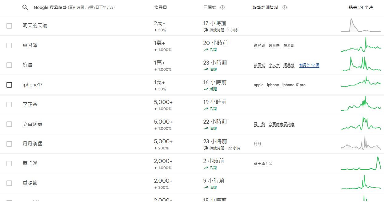 關鍵字利用: 明天的天氣、iPhone 17、立百病毒
