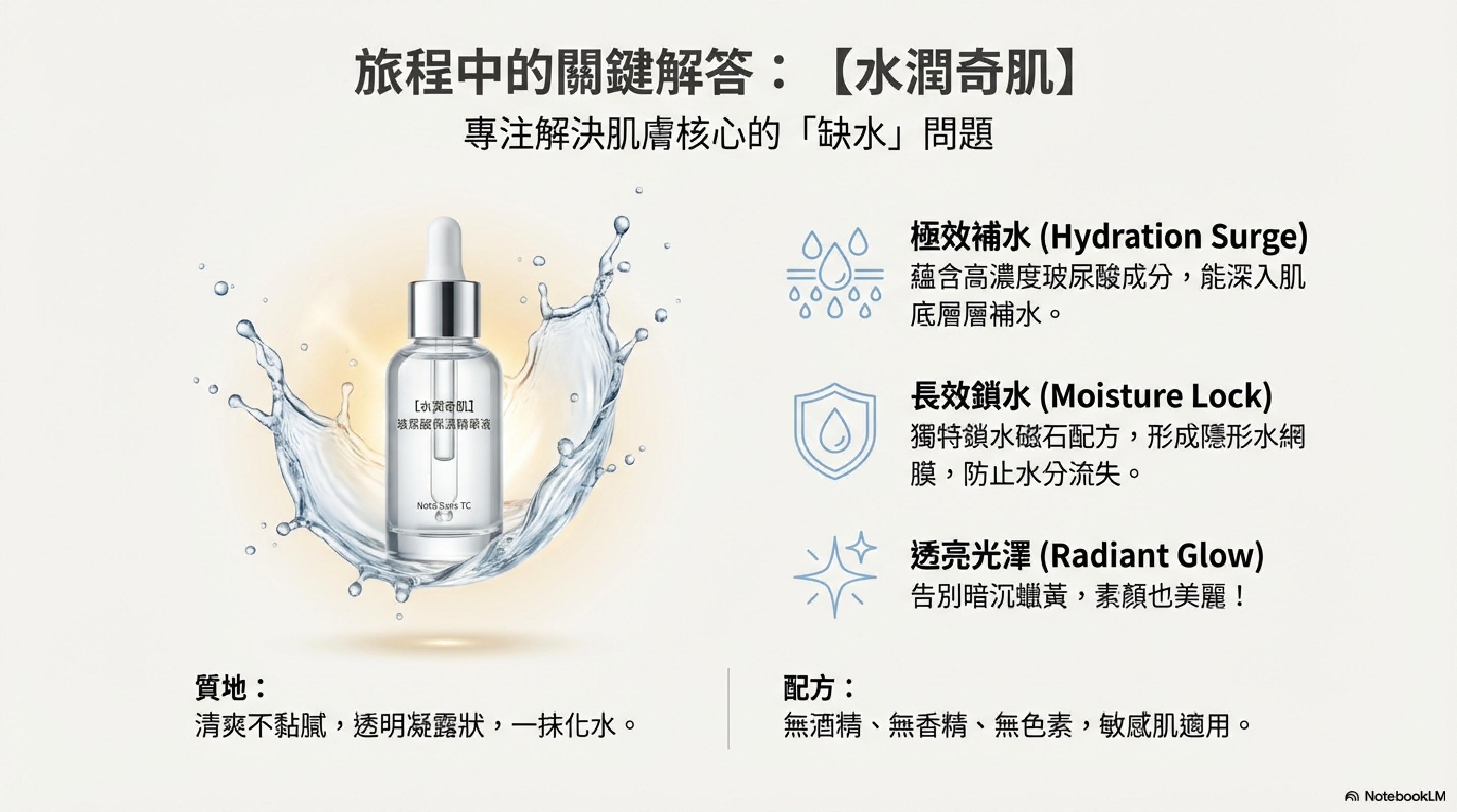 我們為你帶來這款【水潤奇肌】玻尿酸保濕精華液,專注解決肌膚核心的「缺水」問題!